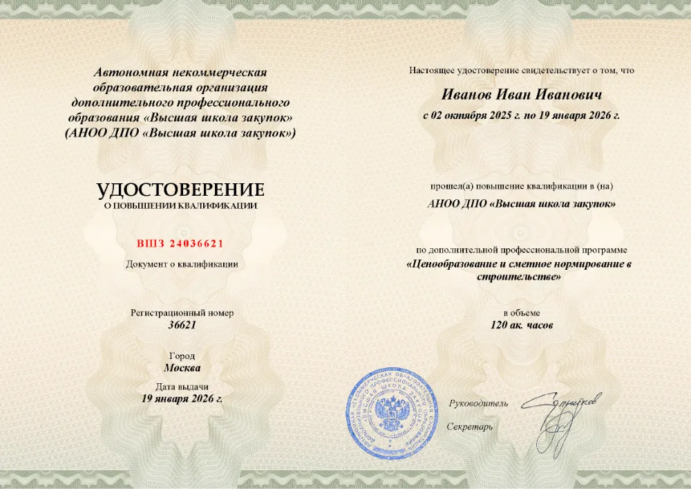 Повышение квалификации, 72 академических часа, 7 модулей: составление локальной сметы и расчет накладных расходов, работа со сметно-нормативными базами, виды строительства и расчет затрат, определение сметной стоимости материалов и техники, конъюнктурный анализ цен, особенности расчета стоимости монтажа оборудования и пусконаладочных работ, практические навыки составления смет в MS Excel методами БИМ и РМ. Онлайн-обучение в в Улан-Удэ с итоговой аттестацией.
