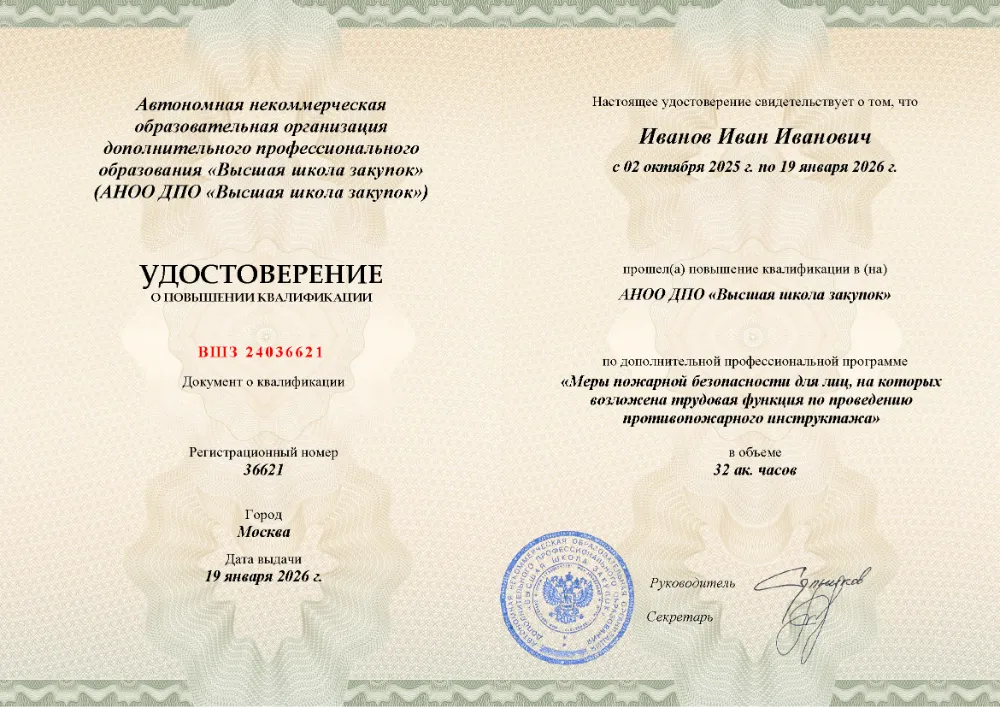 Повышение квалификации, 32 академических часа, 3 модуля: нормативно-правовые основы и обязанности инструктора, содержание и методика проведения противопожарных инструктажей, практические знания и навыки для эффективного обучения персонала. Онлайн-обучение в в Улан-Удэ с итоговой аттестацией.