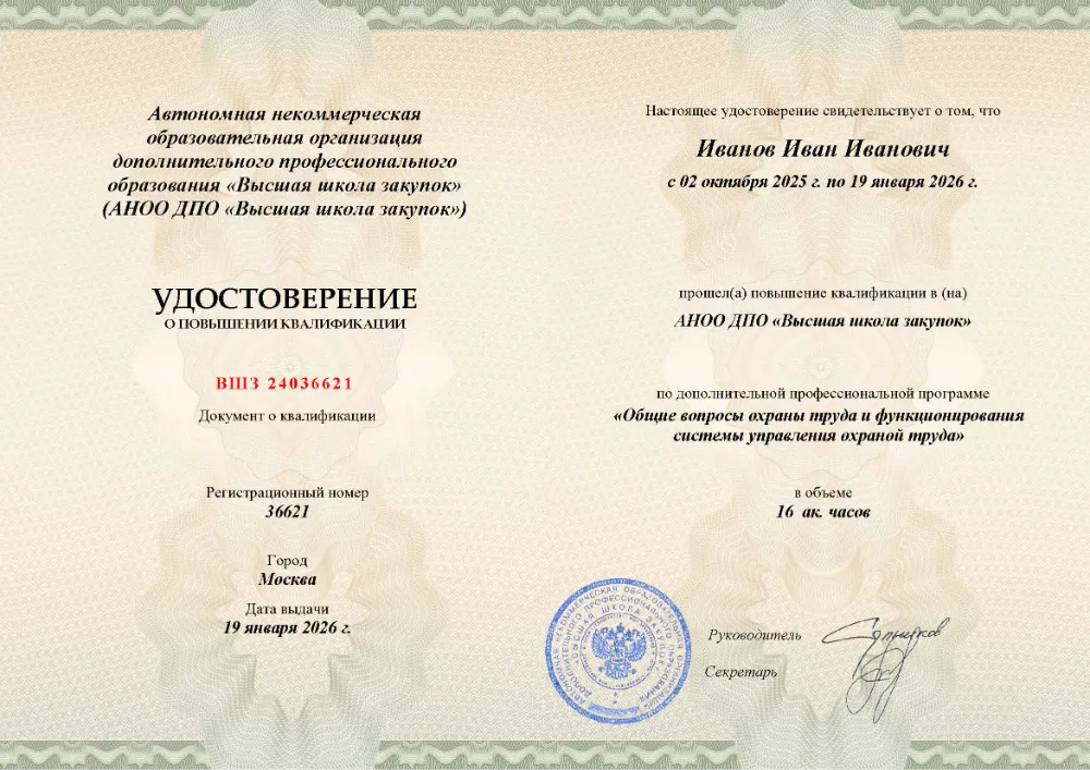Повышение квалификации, 16 академических часов, 4 модуля: правовые основы и организация системы охраны труда, управление профессиональными рисками и оценка условий труда, обеспечение безопасных условий и социальные гарантии работникам, расследование несчастных случаев и внутренний аудит системы. Онлайн-обучение в в Улан-Удэ с итоговой аттестацией.